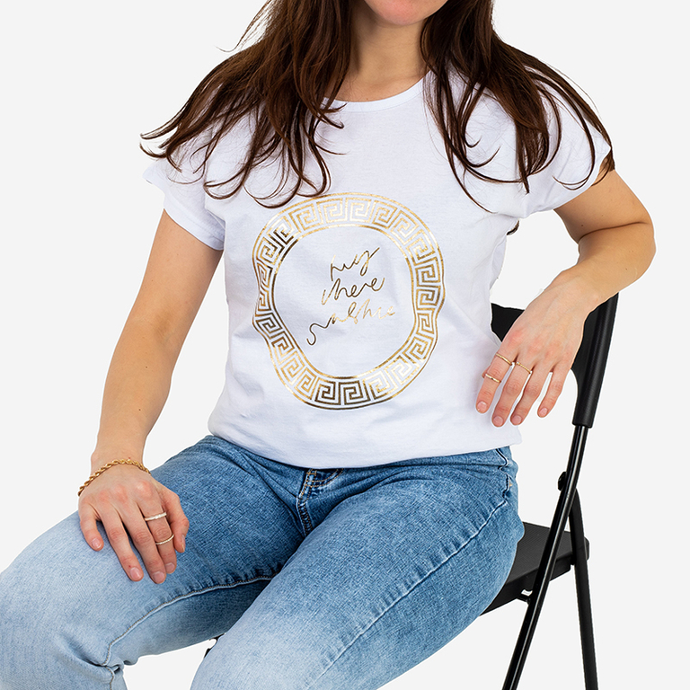 Біла жіноча футболка з золотим принтом PLUS SIZE