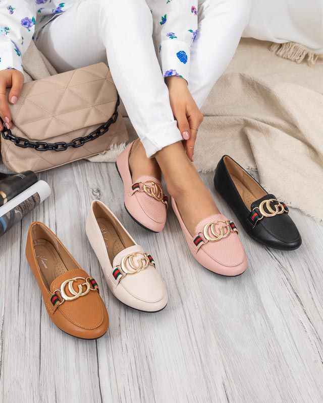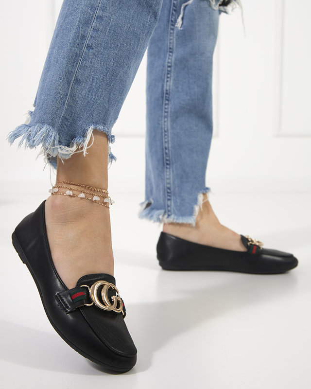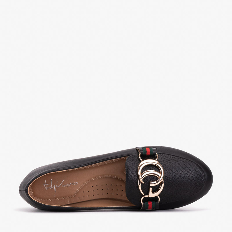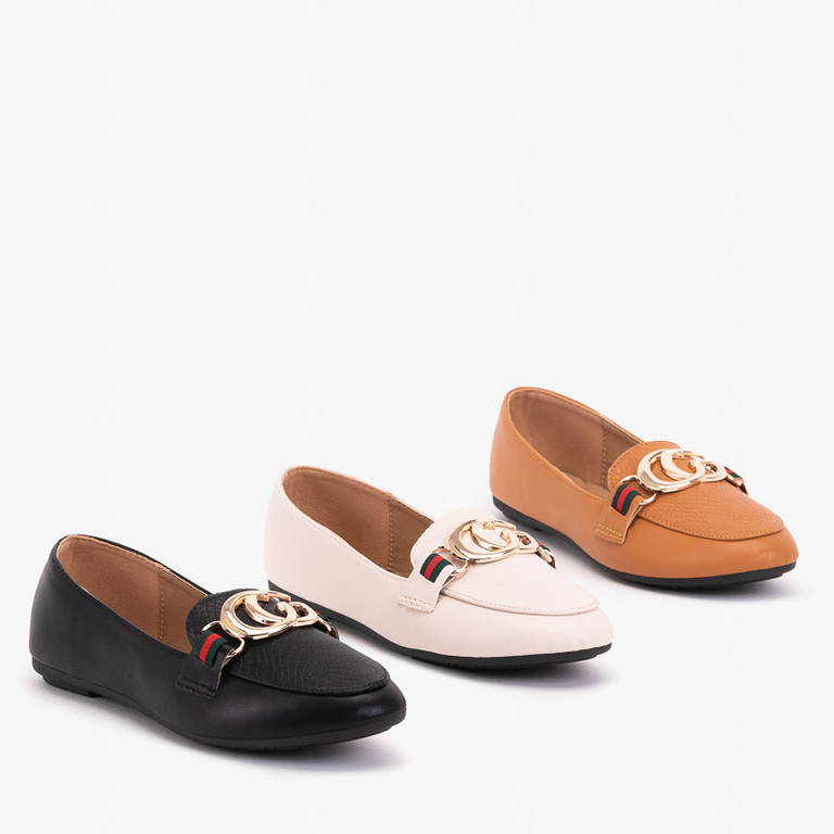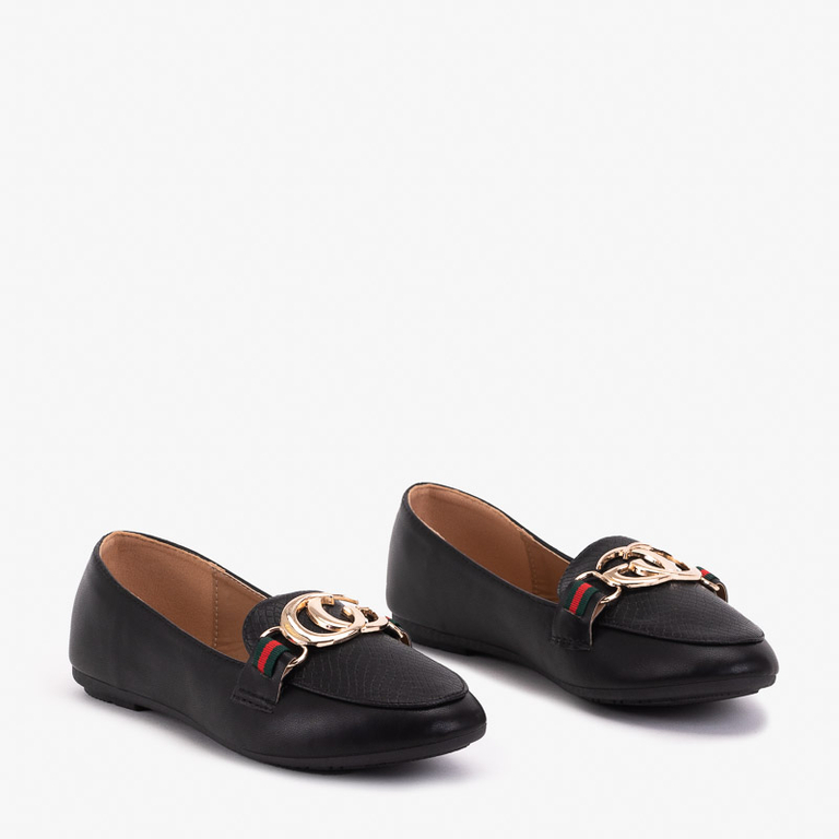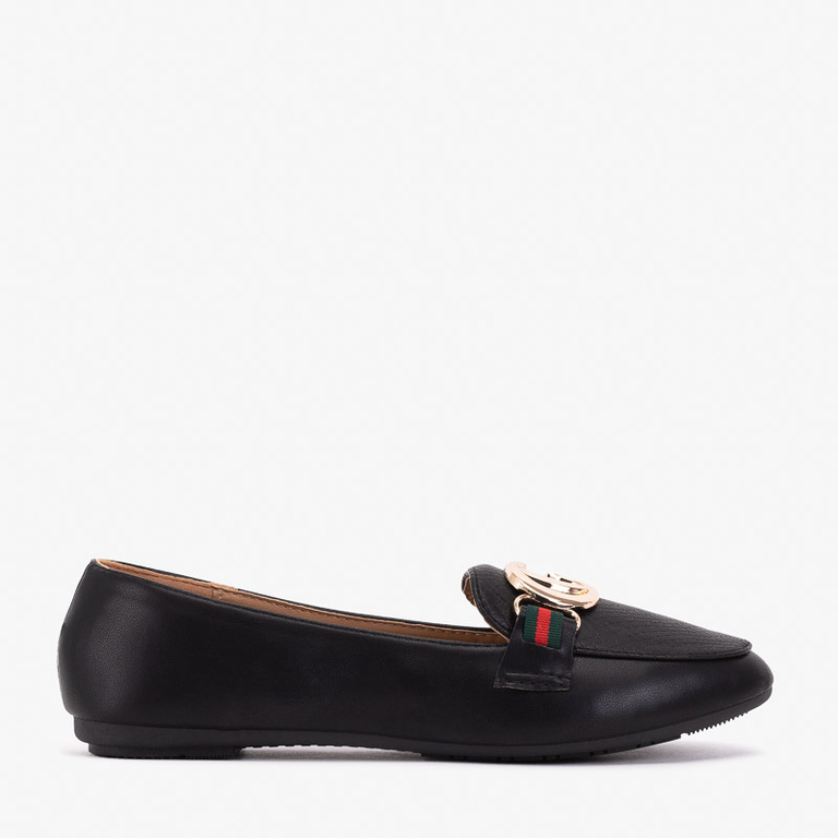 - Елегантні жіночі мокасини із золотим металевим оздобленням на носку. Верх виготовлений з еко-шкіри, м'яка устілка з подушками забезпечить комфорт під час носіння!