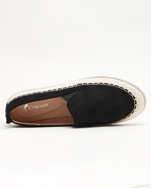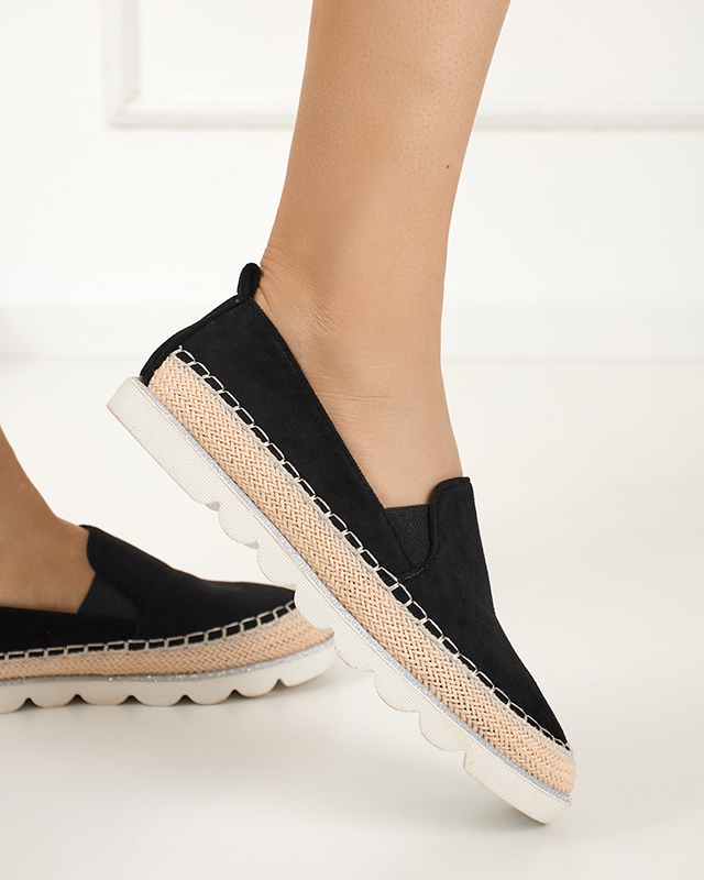 - Жіночі сліпони з екологічної замші, мають устілку з екошкіри. Нижня частина прикрашена джгутовою ниткою, блискітками. ПРИМІТКА: модель може мати незначні зміни кольору на підошві та джутовій нитці.