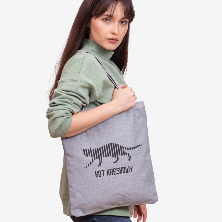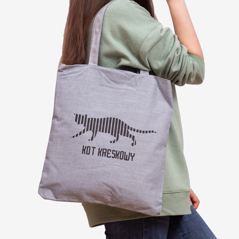 Сіра сумка з написом та принтом кота