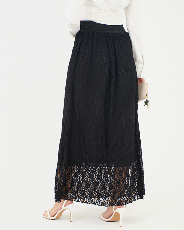 • Стильна жіноча спідниця довжини міді. Виконана з приємного мереживного матеріалу. Еластична резинка в поясі. Модель з підкладкою, доступна в різних кольорах!