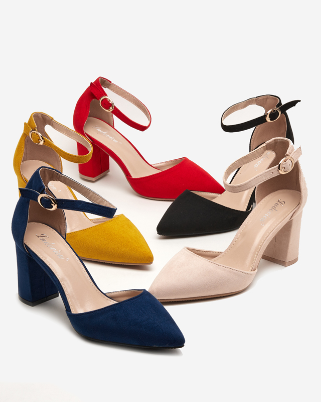 - Класичні жіночі босоніжки на підборах. Виготовлені з екологічної замші. Модель застібається на пряжку на рівні щиколотки, має устілку з екологічної шкіри. Загострений носок робить ноги візуально стрункішими.