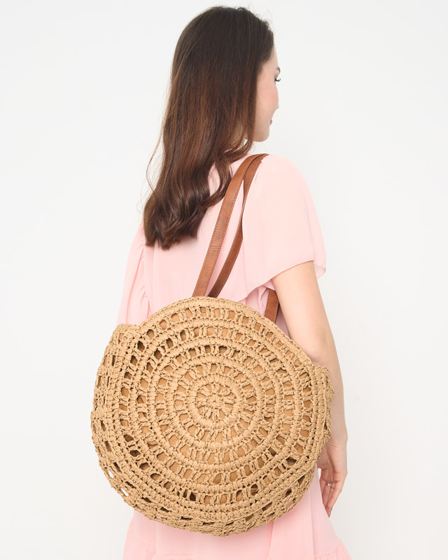 Жіноча кругла коричнева солом'яна сумка - Аксесуари