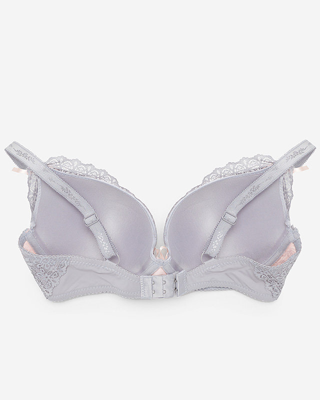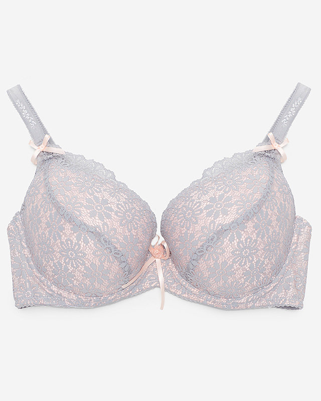 Сіро-рожевий жіночий мереживний бюстгальтер