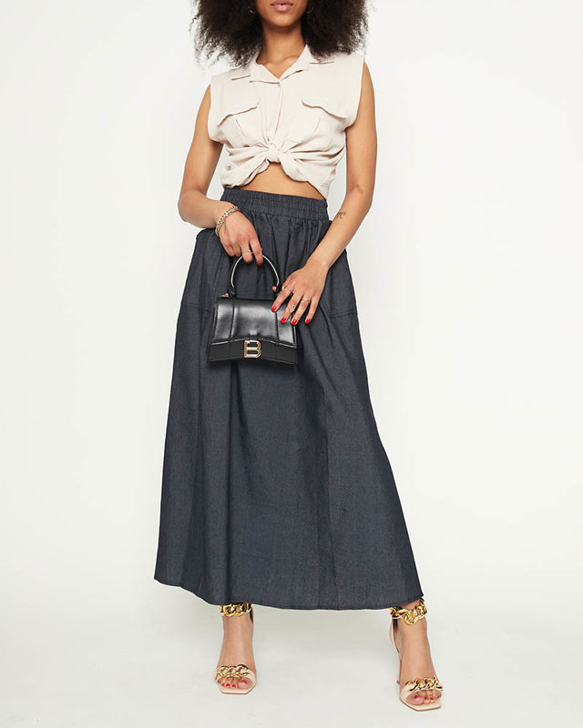 Жіноча чорна довга спідниця з кишенями - Одяг