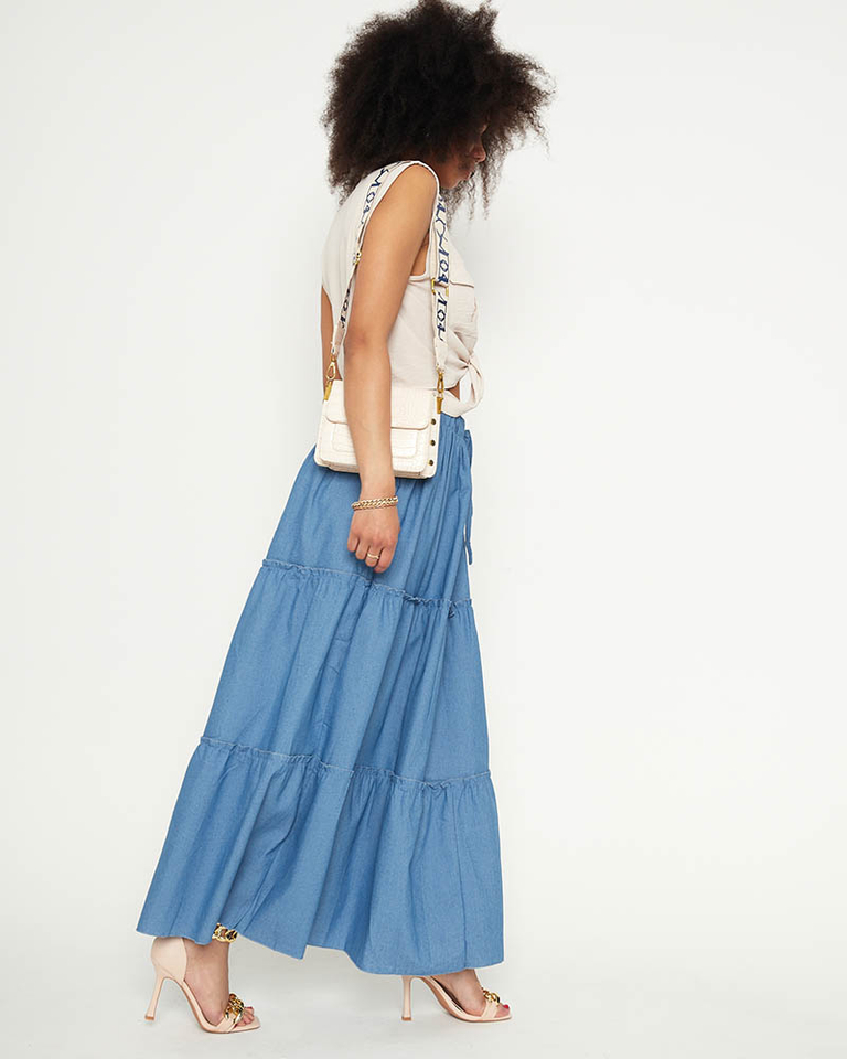 • Легка жіноча спідниця довжини максі з приємної бавовни. Еластична резинка і зав'язка на талії. Чудовий варіант для теплих днів! ПРИМІТКА: Точність вимірювання (+/-) 1 см.