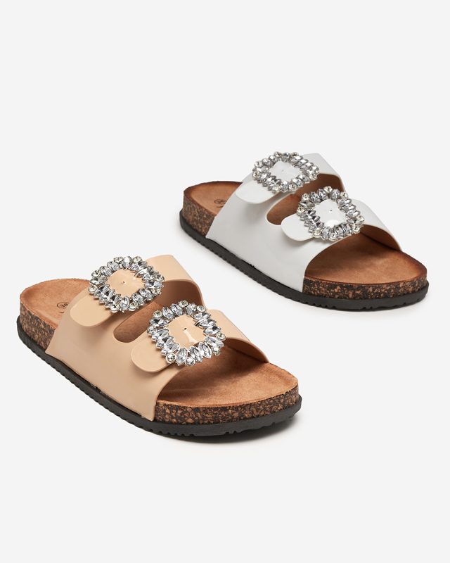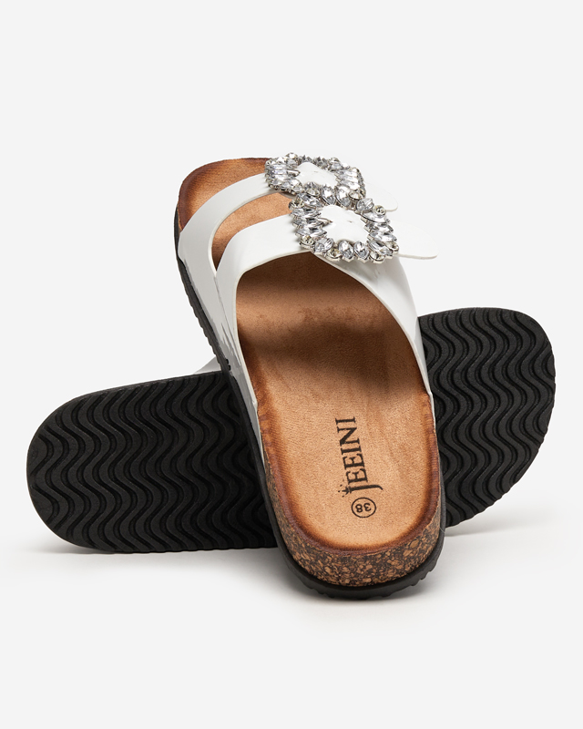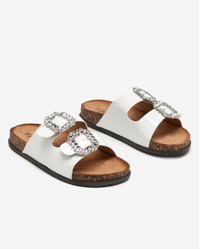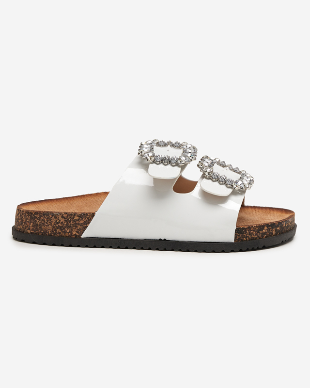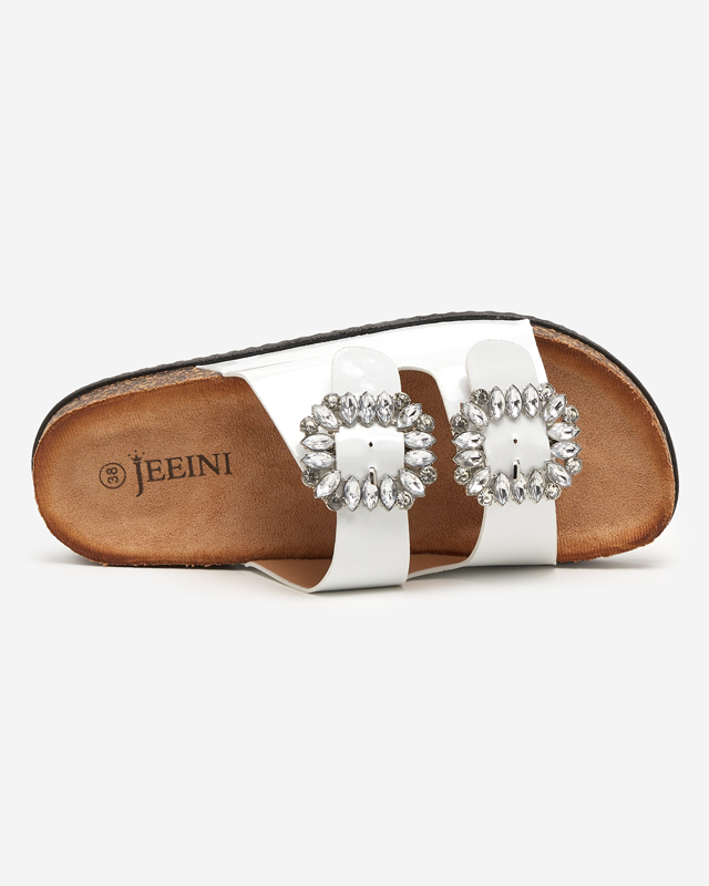 Білі жіночі шльопанці з декорованими застібками Olimika