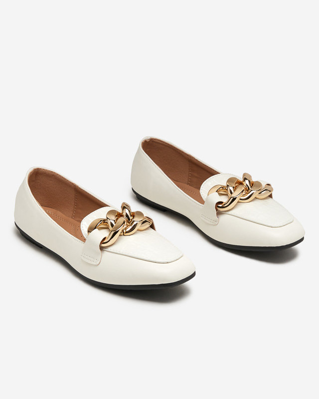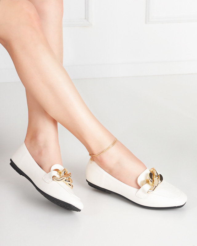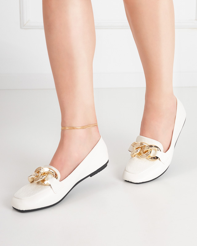 Жіночі білі лофери з екошкіри на ланцюжку Flamii - Взуття