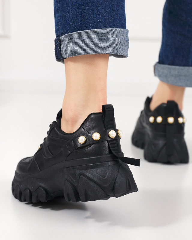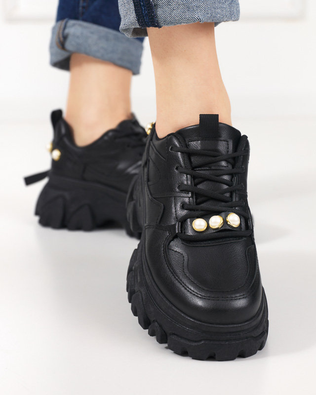 - Неймовірно стильне жіноче спортивне взуття на масивній підошві. Модель на шнурівці, виготовлена з комбінації екологічної шкіри, всередині устілка з тканини. Верх прикрашений штучними перлинками. Чудове доповнення до вашого повсякденного вбрання!