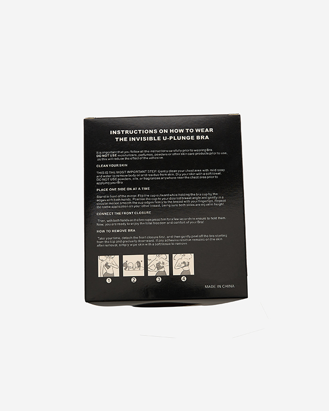 • Самоклеючий жіночий бюстгальтер, закріплений тонкими гелевими внутрішніми вставками на чашечках і гелевими шарами на безбарвних силіконових крильцях з боків. У чашечках є кісточки. ПРИМІТКА: Точність вимірювання (+/-) 1 см.