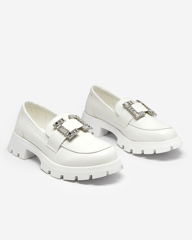 Білі матові жіночі туфлі зі сріблястою пряжкою Vusito - Взуття