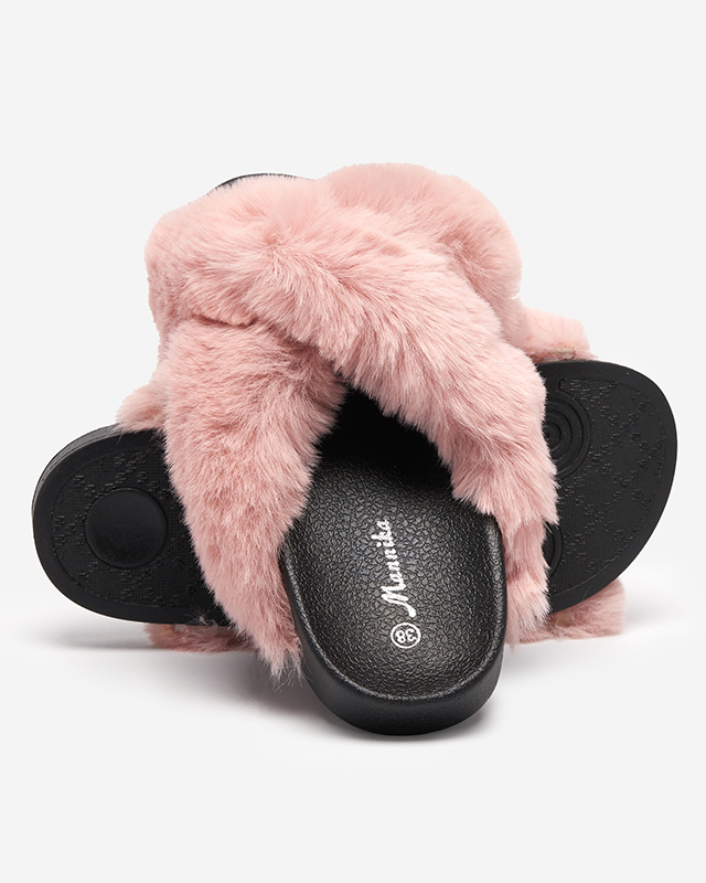 - Ефектні жіночі шльопанці, які прикрашені хутром на лямках. Гумова підошва, що підтримує стопу. Оригінальне взуття, яке підійде до багатьох стилів!
