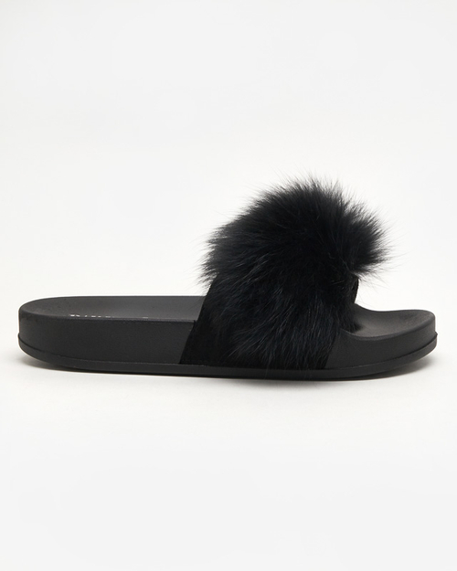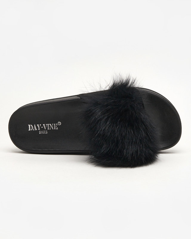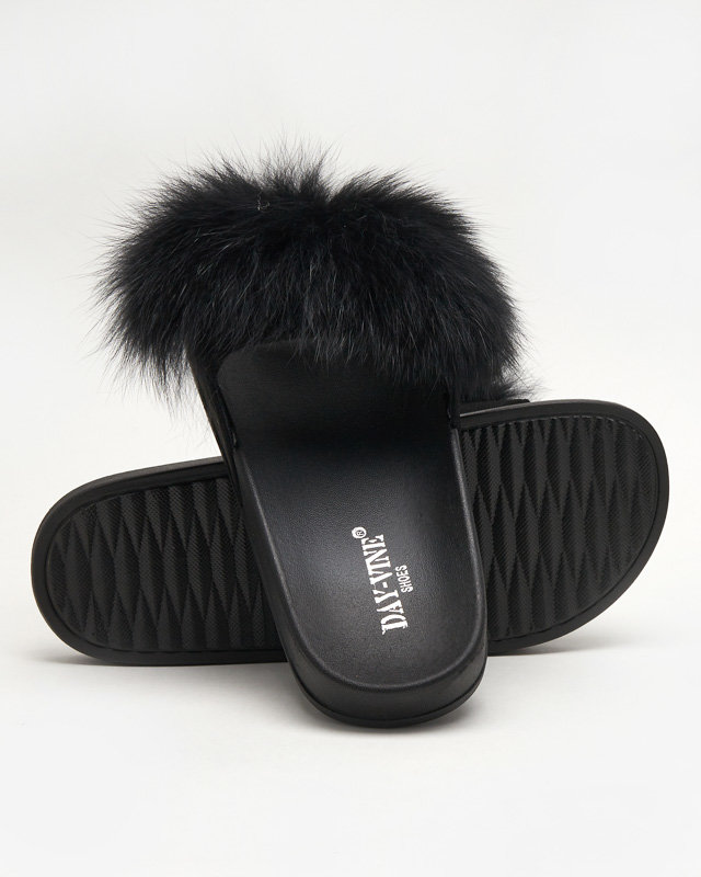 OUTLET Чорні тапочки з хутром Nate - Взуття