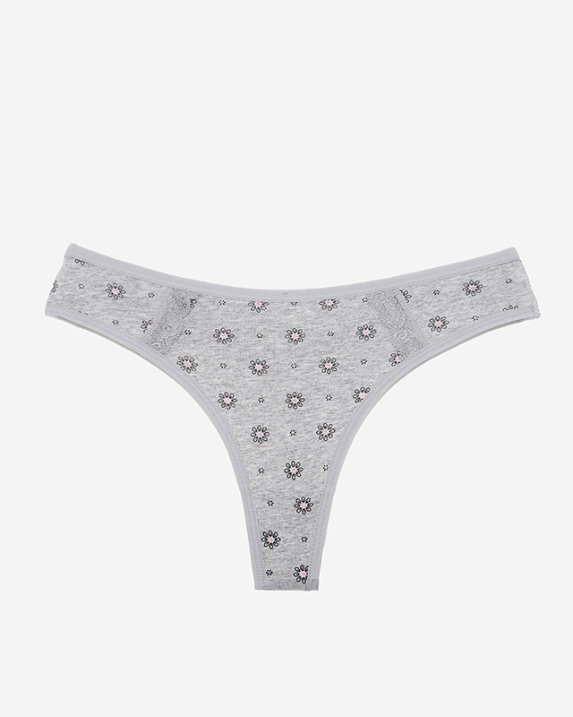• Класичні жіночі стрінги, прикрашені квітковим візерунком. Модель оздоблена мереживом, виготовлена з матеріалу з високим вмістом бавовни - ідеальні на щодень! ПРИМІТКА: Точність вимірювання (+/-) 1 см.
