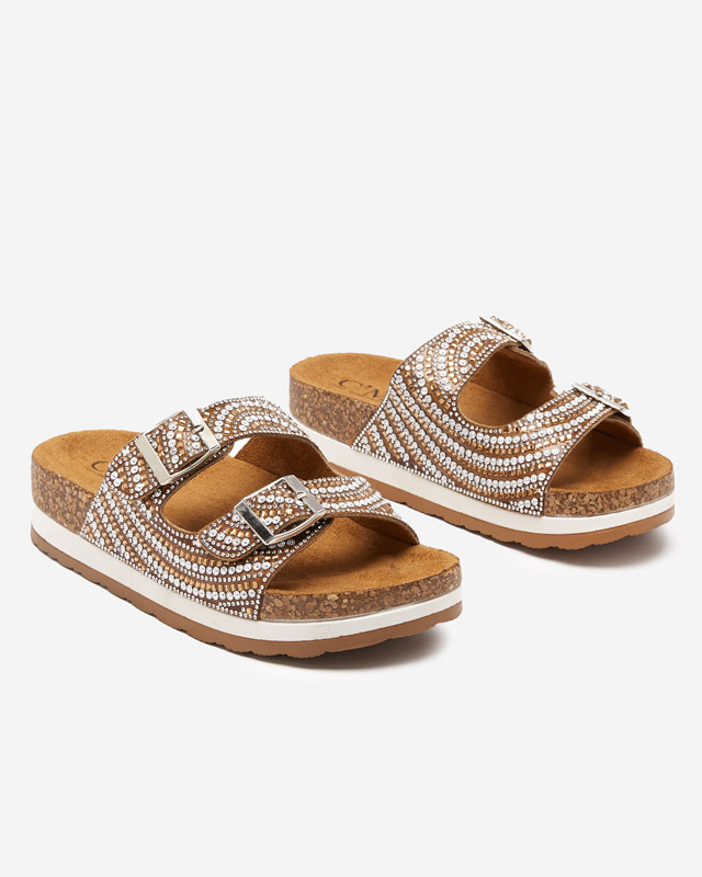 Коричневі жіночі шльопанці з фіанітами Laluda