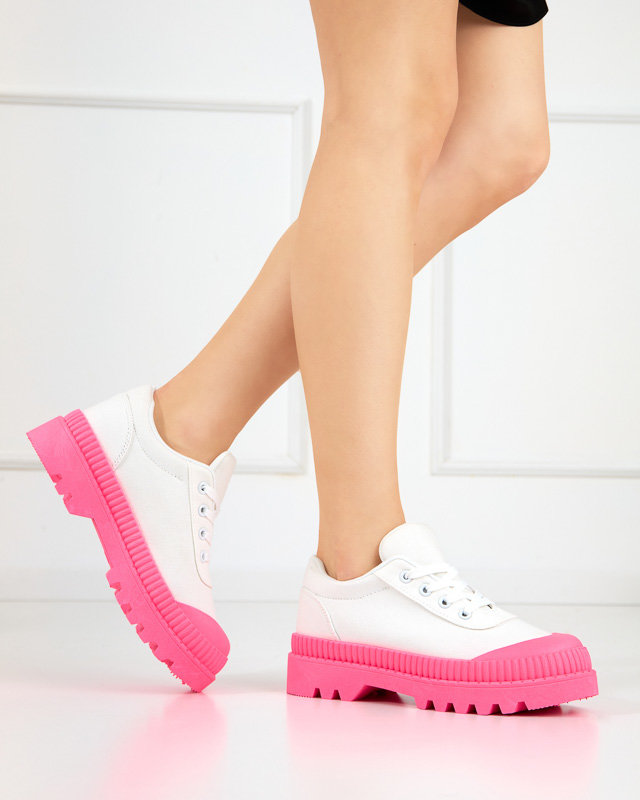 OUTLET Жіночі білі кросівки на неоново-рожевій підошві Comp - Взуття