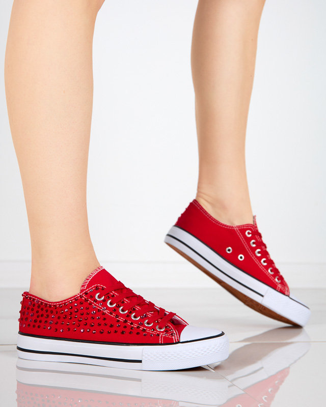 OUTLET Жіночі кросівки з різнокольоровими цирконами червоного кольору Amanda - Взуття