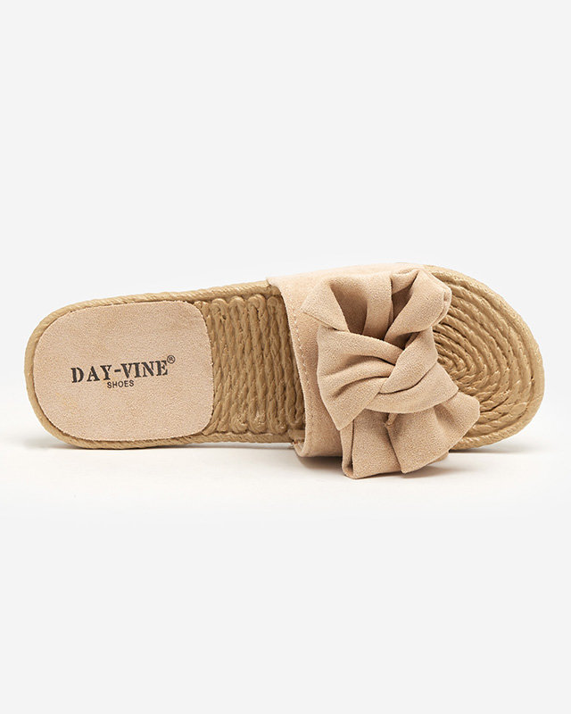 OUTLET Жіночі бежеві тапочки з бантом Terina - Взуття