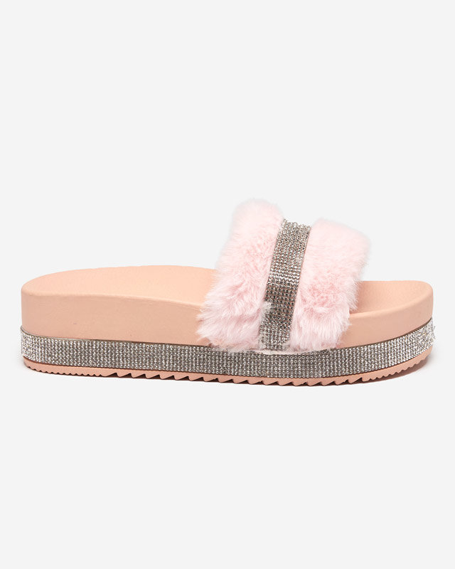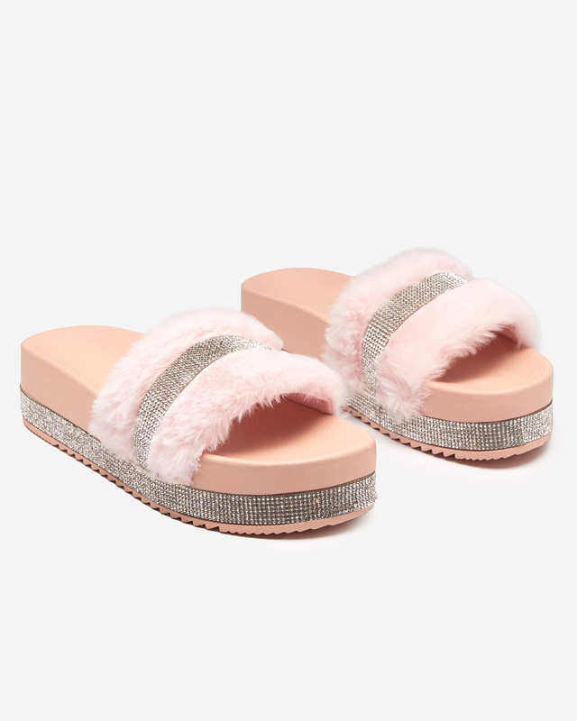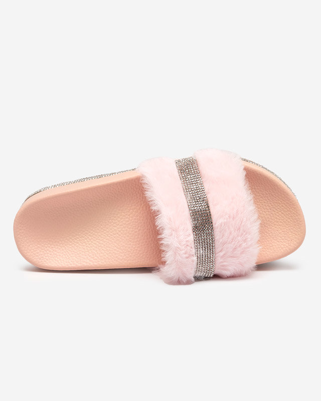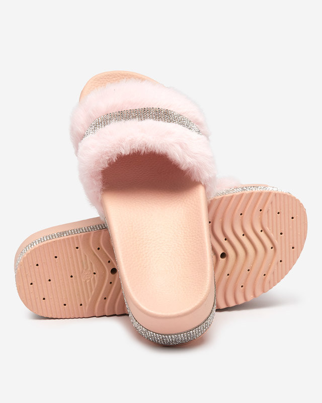 OUTLET Рожеві жіночі тапочки з хутром і фіанітами Zerika - Взуття