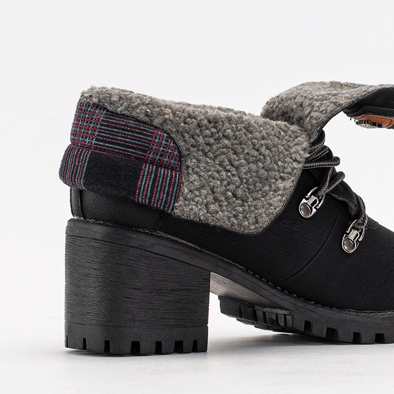 - Жіночі ботильйони з гумовим каблуком, виготовлені з екологічної шкіри. Модель на шнурівці, подбита овчиною. Чудовий аксесуар до сукні та светра! ЧОРНЕ ЗИМОВЕ ВЗУТТЯ РОЯЛТАНСЬКІ УТЕПЛЕНІ ЧЕРОБИ Примітка: на виробі є подряпини на матеріалі.