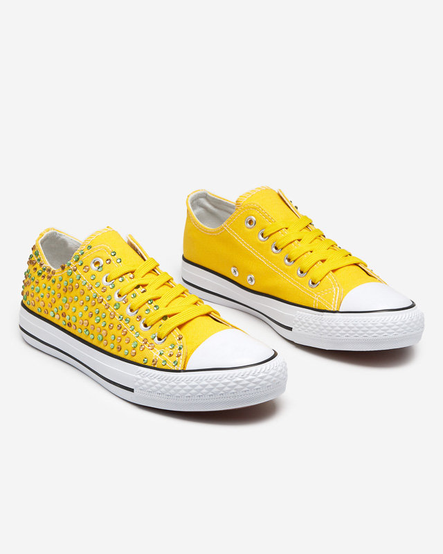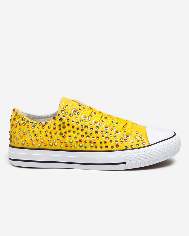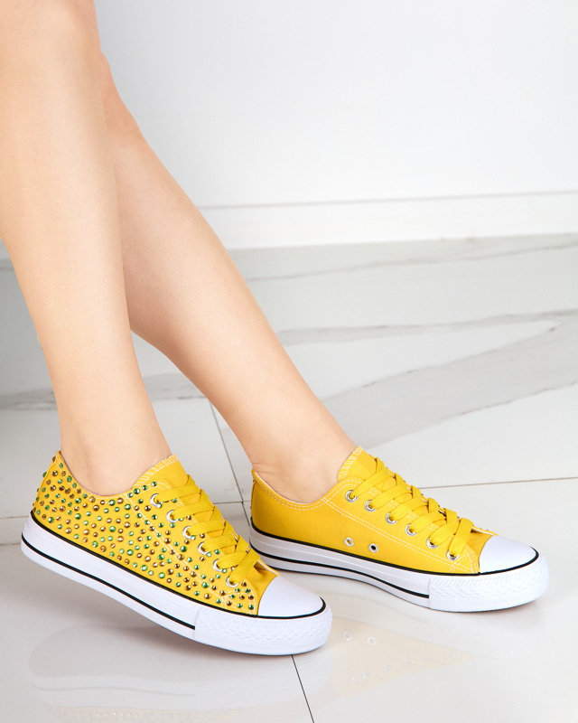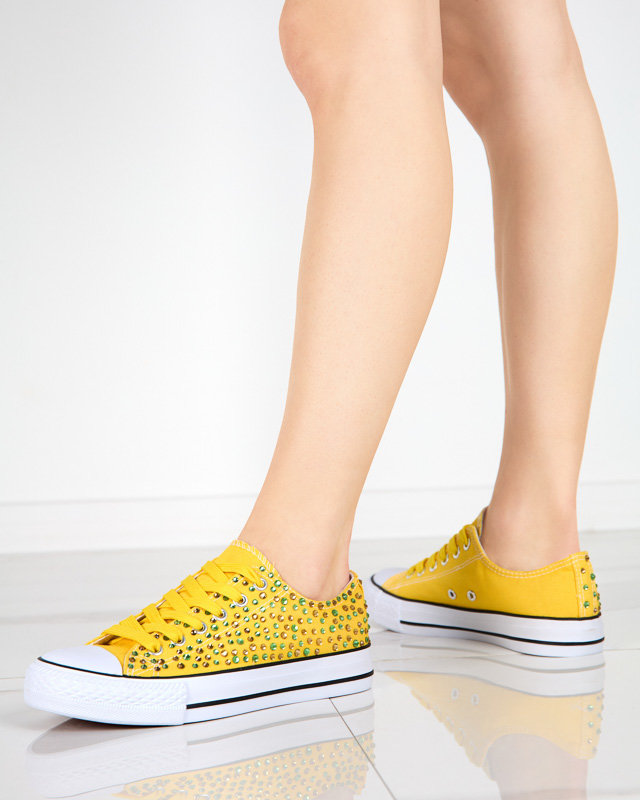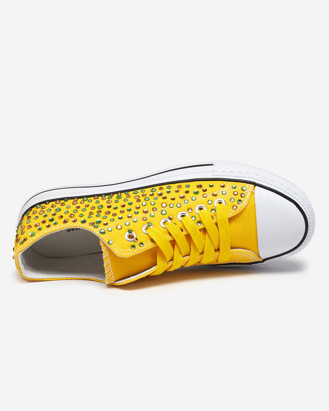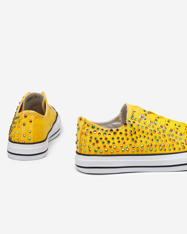 OUTLET Жіночі кросівки з різнокольоровими цирконами жовтого кольору Amanda - Взуття