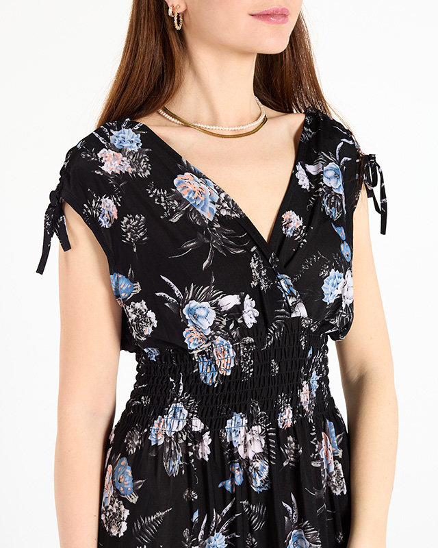 - Миле жіноче плаття максі, виготовлене з м'якої та повітряної віскозної тканини. Модель з вирізом-конверт, широкими бретелями і широкою еластичною талією, що підкреслює талію. ПРИМІТКА: Точність вимірювання (+/-) 1 см.