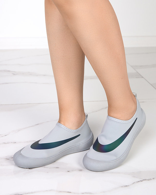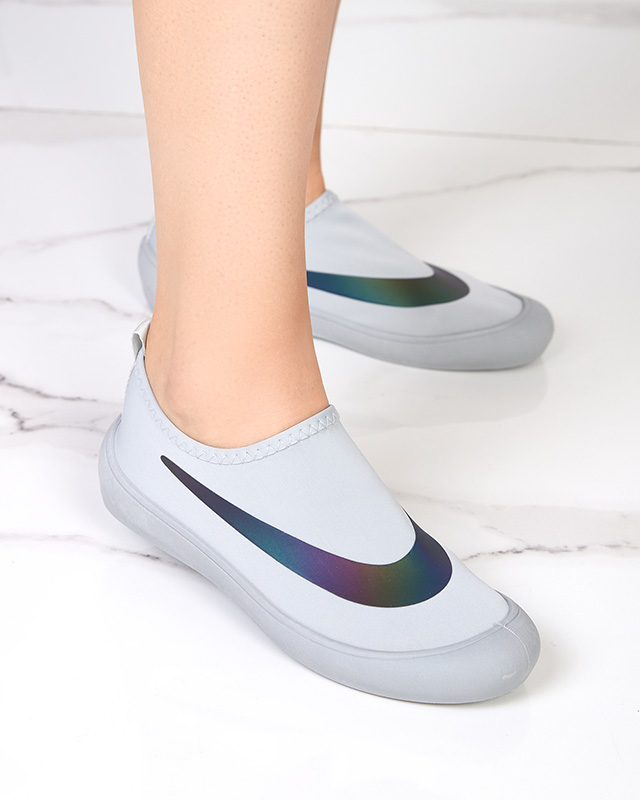 - Жіноче спортивне взуття сліп он на плоскій підошві. Верх і устілка виготовлені з тканини. Пара прикрашена голографічною вставкою. Ідеальне взуття для створення модних та оригінальних нарядів!