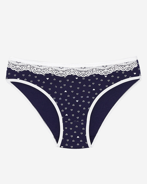 - Трусики жіночі, з принтом у сердечка виготовлені з бавовни. Модель прикрашена мереживом, має еластичну резинку. Ідеальна білизна на кожен день! ПРИМІТКА: Точність вимірювання (+/-) 1 см.