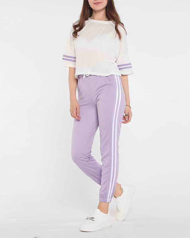 Фіолетово-білий жіночий спортивний костюм з лампасами