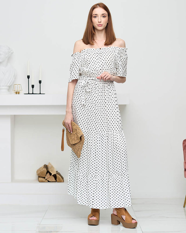 Жіноча біла сукня міді в горошок з відкритою спиною - Одяг