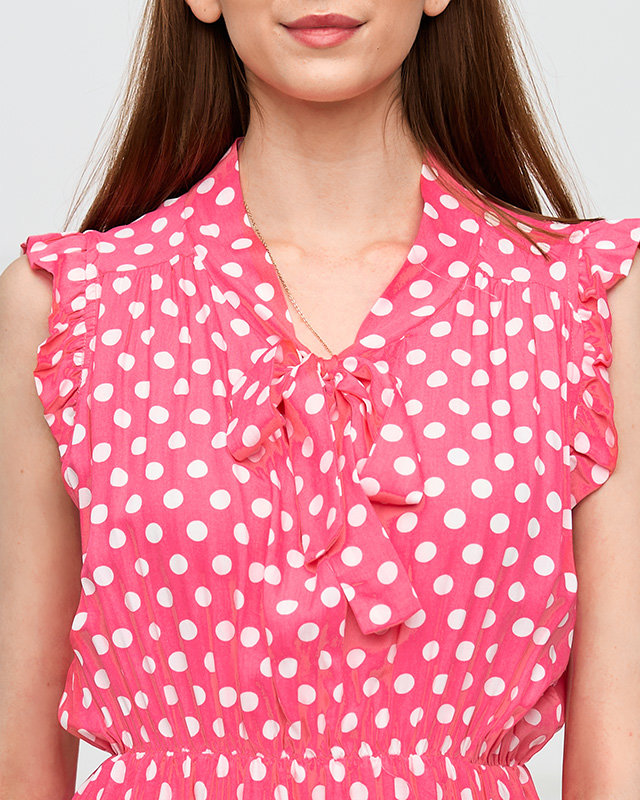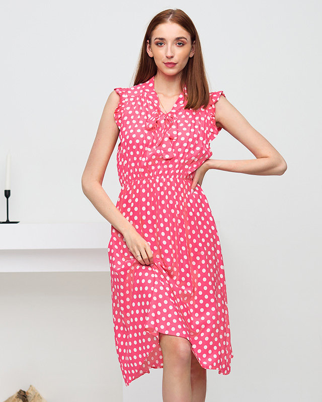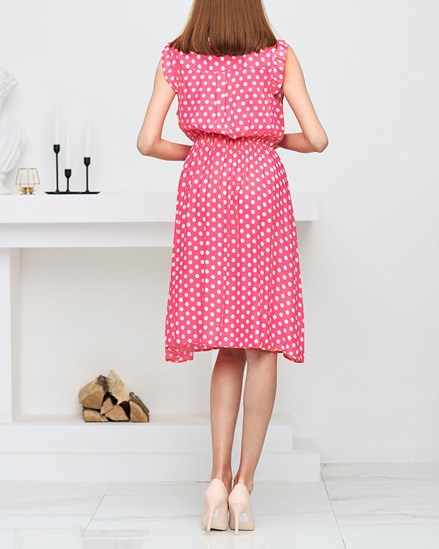 Рожеве жіноче плаття в горошок до коліна - Одяг