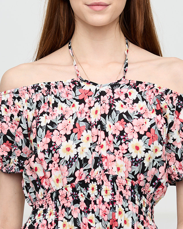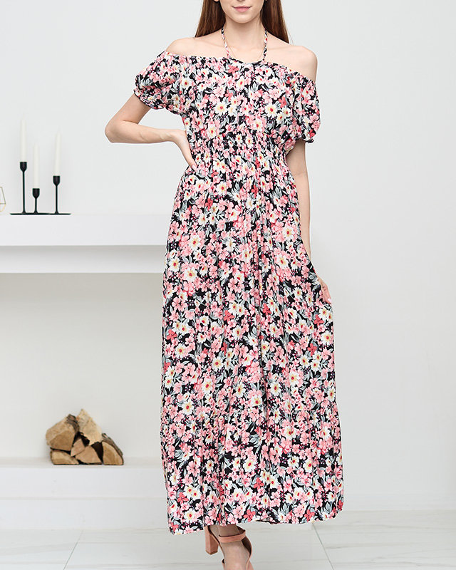 Довге літнє чорне жіноче плаття з ніжно-рожевими квітами - Одяг