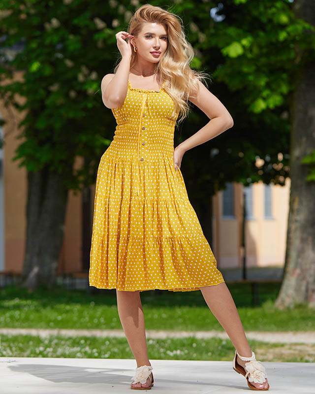 Жовта жіноча сукня в горошок до коліна - Одяг