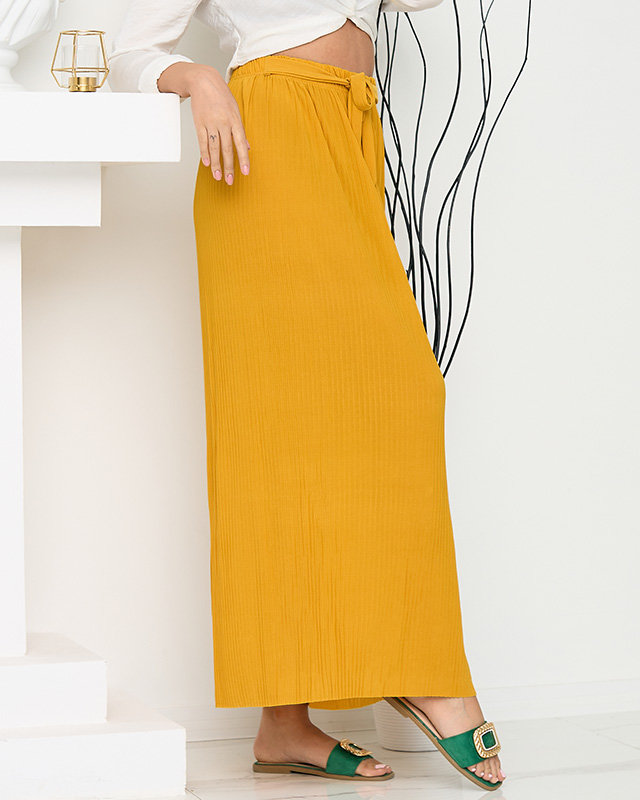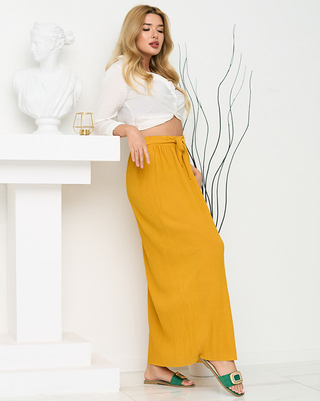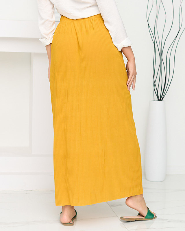 Жіноча гірчична спідниця міді плісе на гудзиках - Взуття