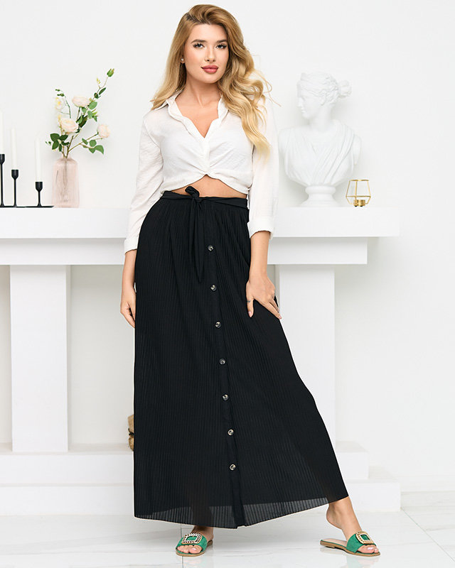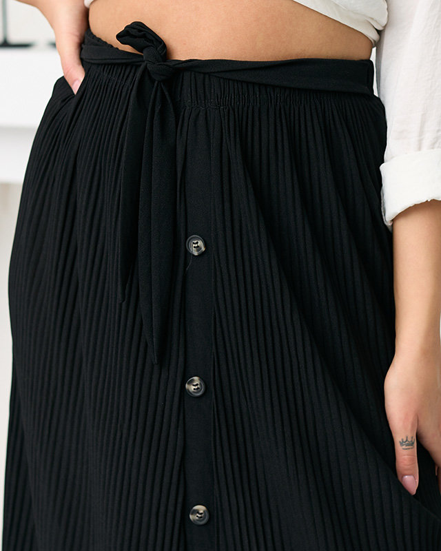 Жіноча чорна плісована спідниця міді на гудзиках - Взуття