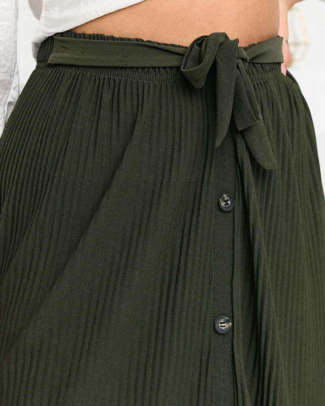 Жіноча зелена плісована спідниця міді з гудзиками - Взуття