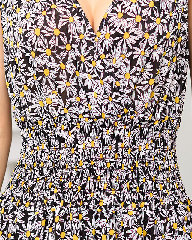Жіночий чорний короткий комбінезон з білими квітами - Одяг