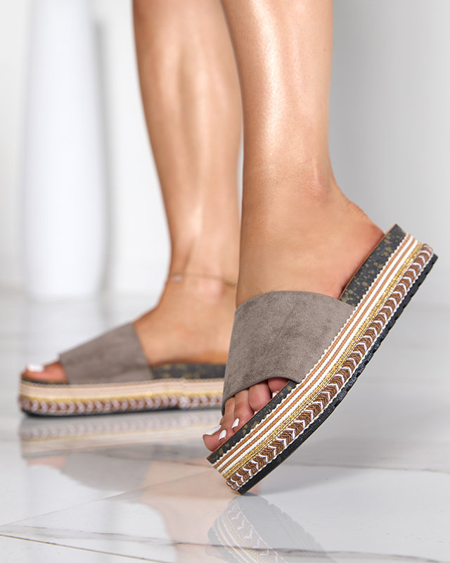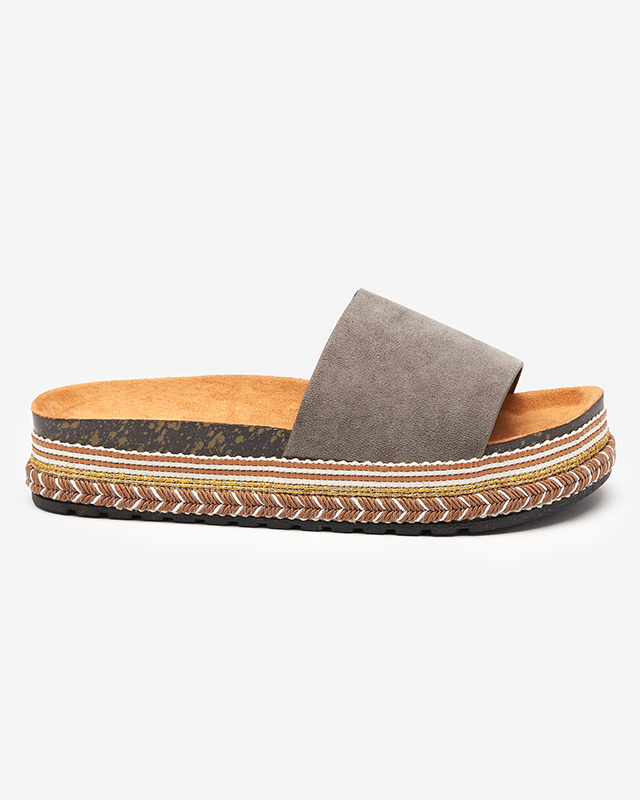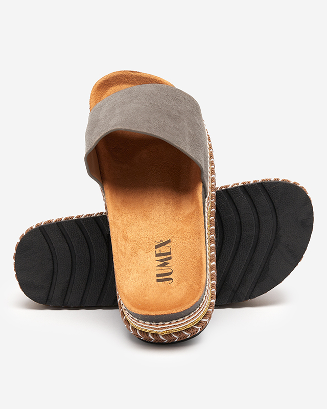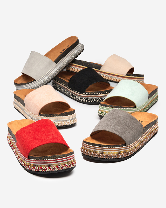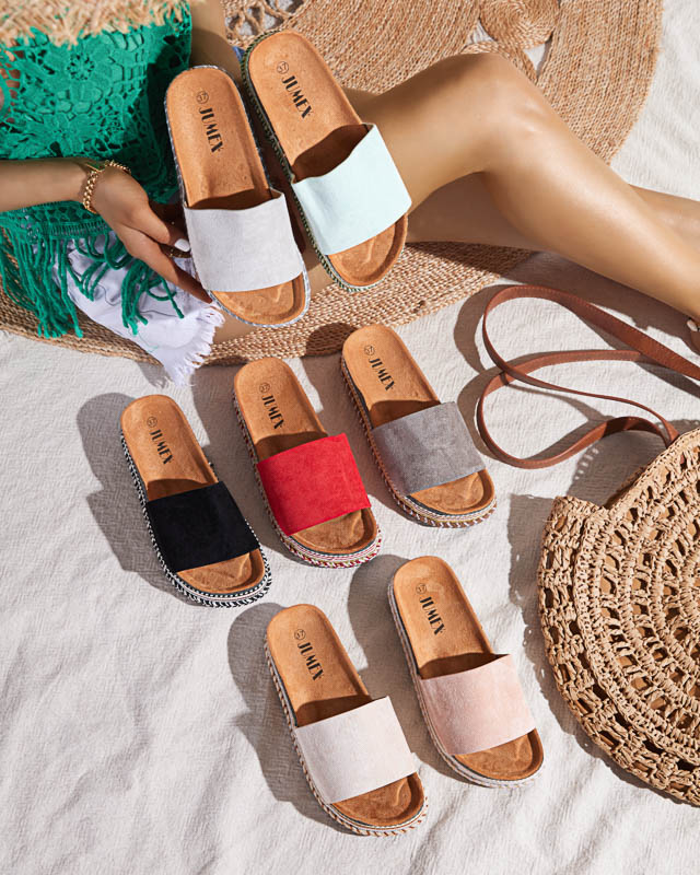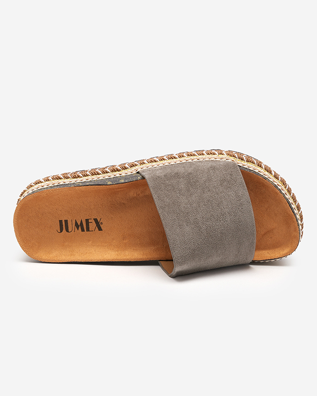 - Фантастичні жіночі шльопанці з екологічної замші, прикрашені плетеним шнуром на підошві. Гумова підошва, декорована пробковим матеріалом. Ідеальне доповнення практично до будь-якого стилю!