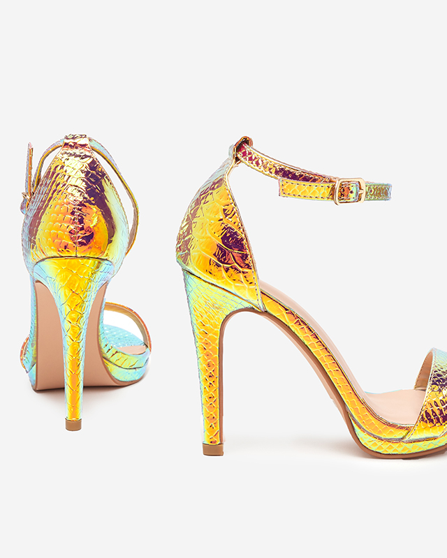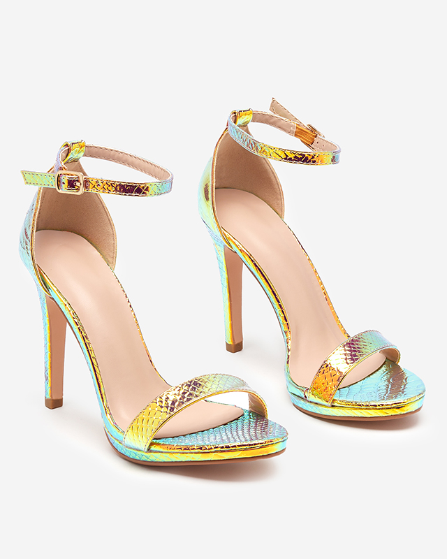 Золоті жіночі голографічні босоніжки на шпильці Fasiro