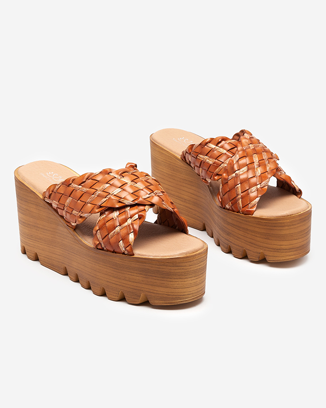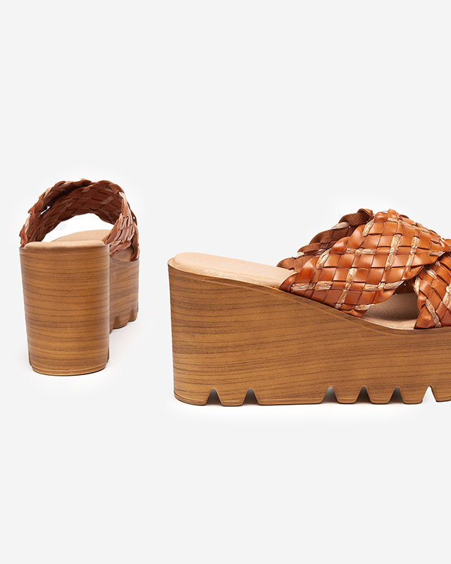 Коричневі жіночі шльопанці на танкетці Balbanina
