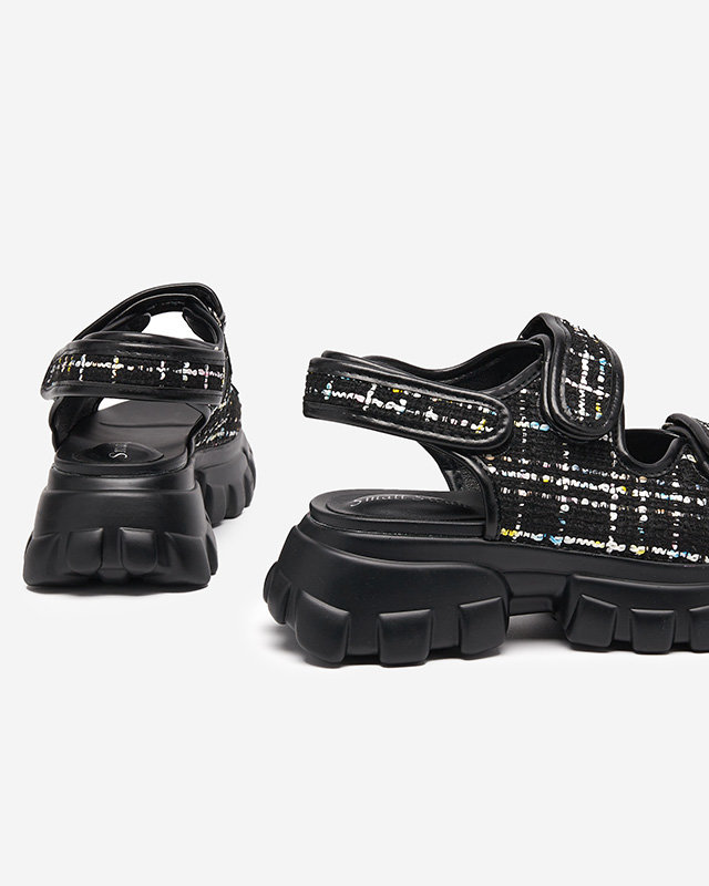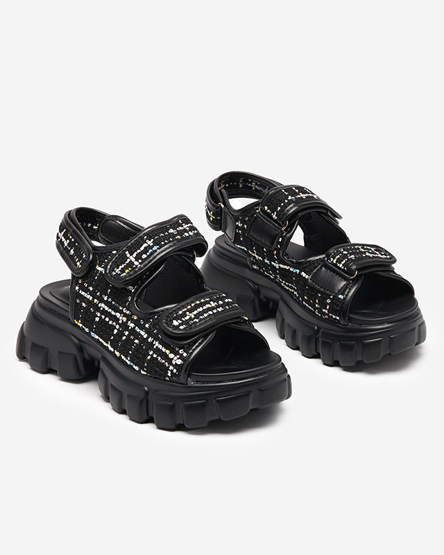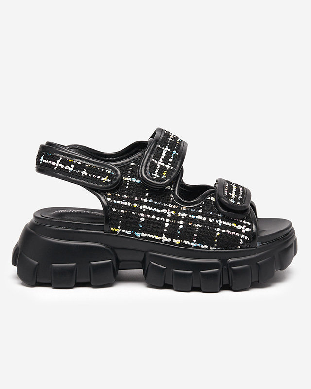 - Класичні босоніжки на масивній підошві. Виконані з тканини. Модель на липучці, устілка з еко-шкіри. Зручне та дуже модне взуття!