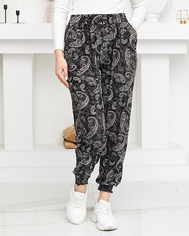 - Зручні вільні жіночі штани з малюнком з легкої тканини. Модель має еластичний пояс, внизу штанів і дві накладні кишені. Ідеально підходить для літа! ПРИМІТКА: Точність вимірювання (+/-) 1 см.