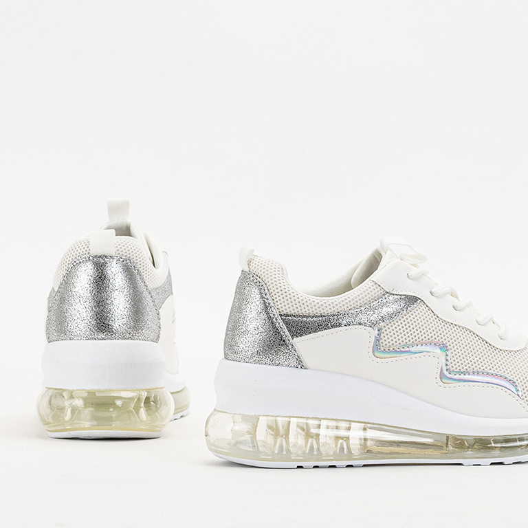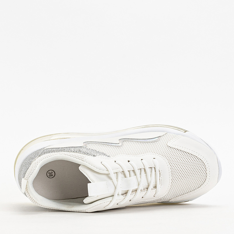- Стильне жіноче спортивне взуття на танкетці, верх на шнурівці та виготовлений з комбінації сітки та матової екологічної шкіри. Всередині тканинна вставка. Примітка: виріб має подряпини на матеріалі.