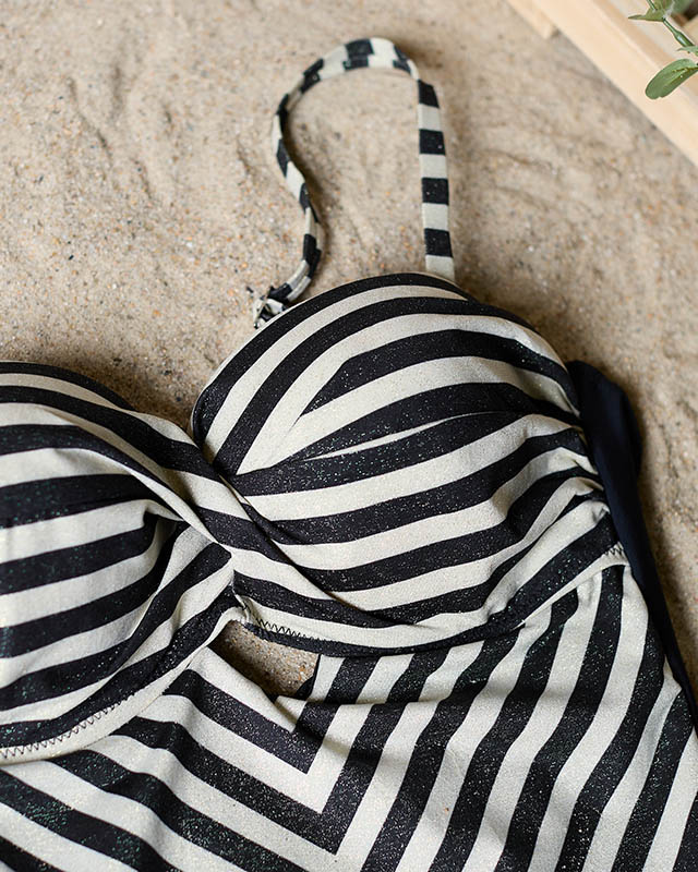 Суцільний чорний жіночий купальник в смужку - нижня білизна