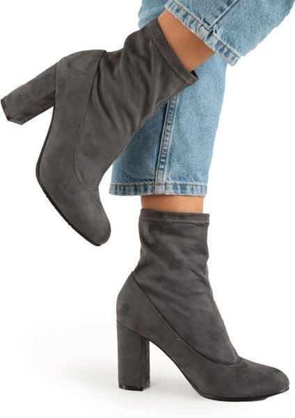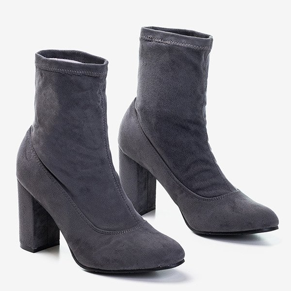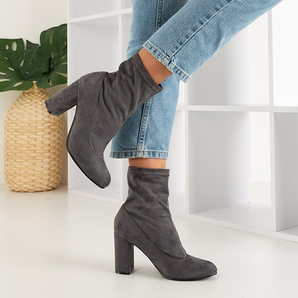 OUTLET Сірі чоботи на стовпі з еко-замші Melinda - Взуття