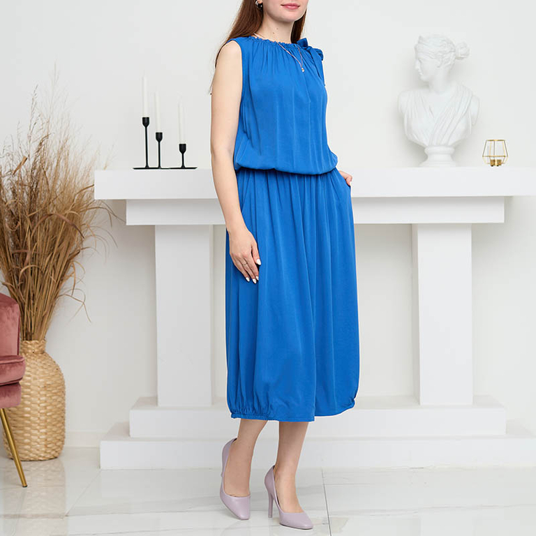 Жіноча темно-синя сукня міді без рукавів - Одяг