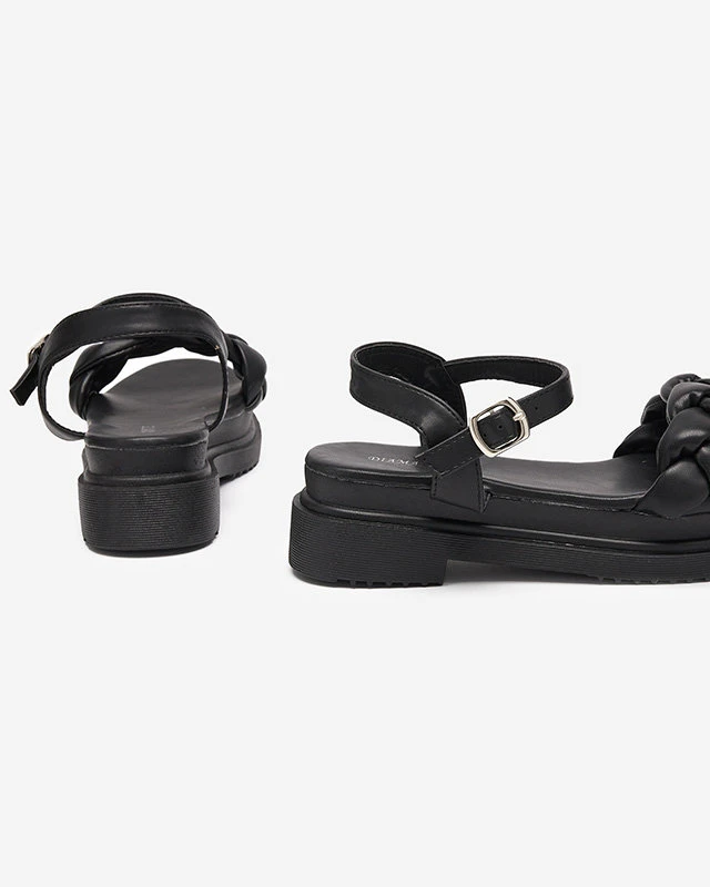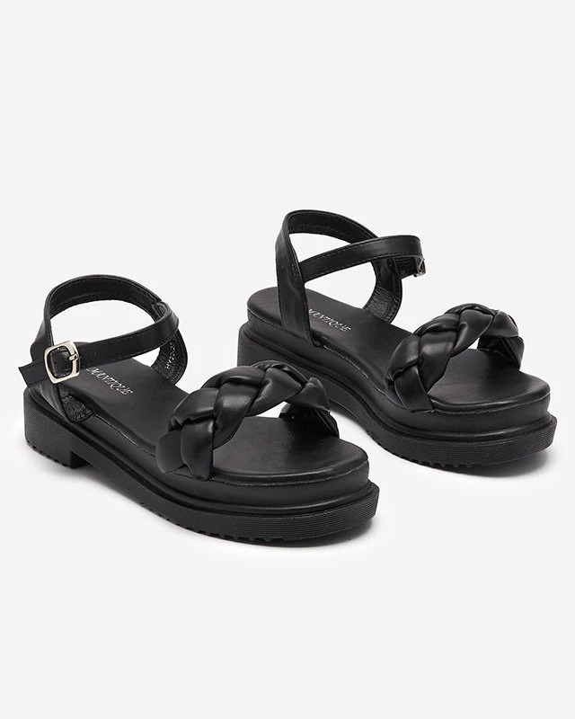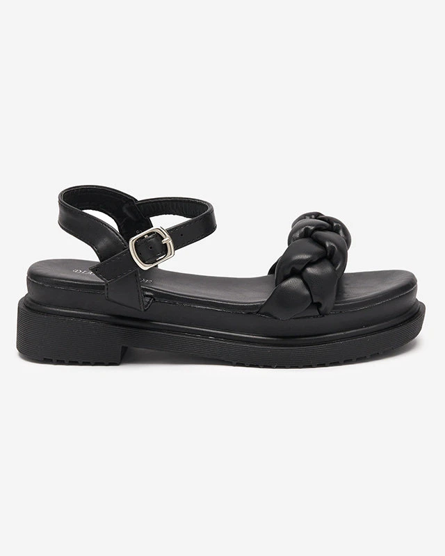 - Стильні жіночі босоніжки на грубій підошві. Модель виконана з еко-шкіри. Взуття застібається на пряжку. Особливо акценту їм додає плетений ремінець.