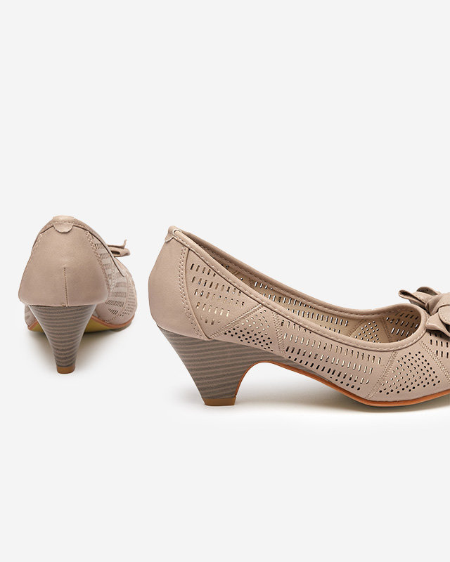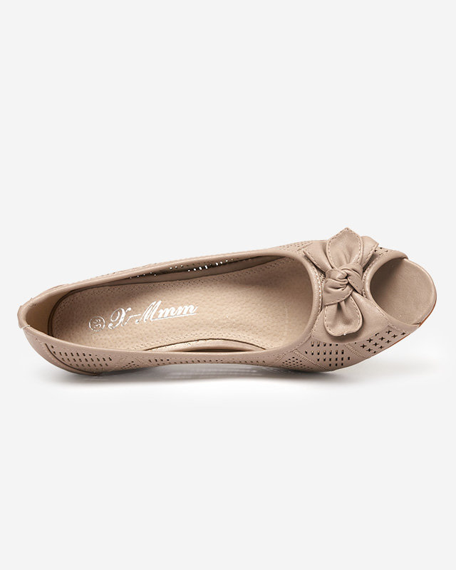 Бежеві жіночі туфлі з відкритими носками на низьких підборах Rekone - Туфлі