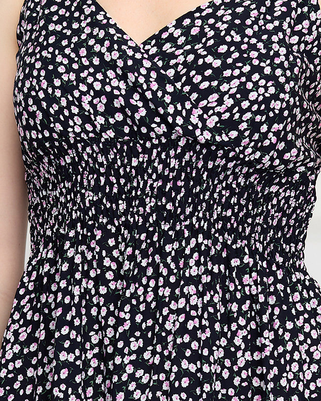 Чорне коротке плаття з крихітним фіолетовим квітковим візерунком - Одяг