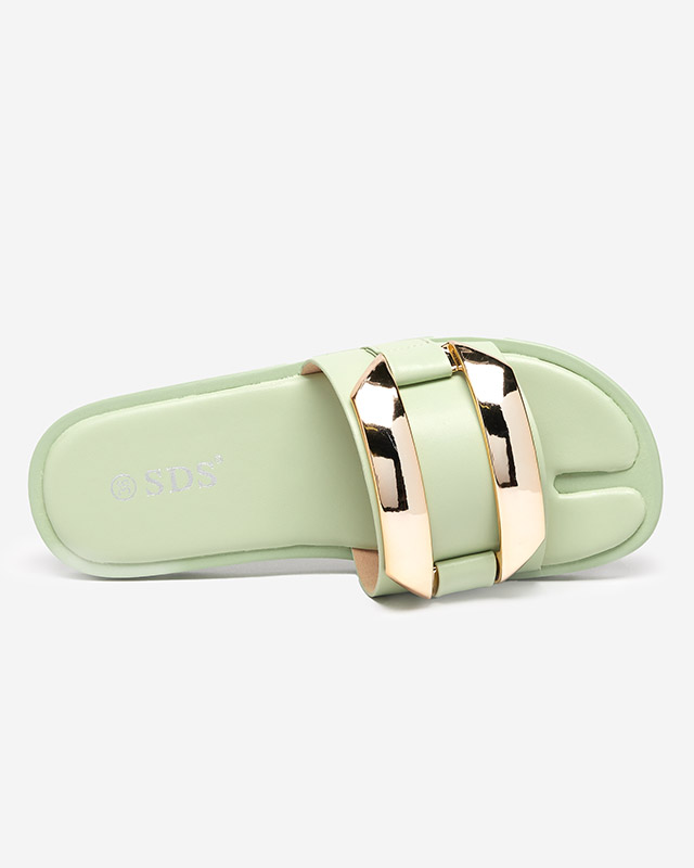 Зелені жіночі шльопанці з золотим оздобленням Kedino
